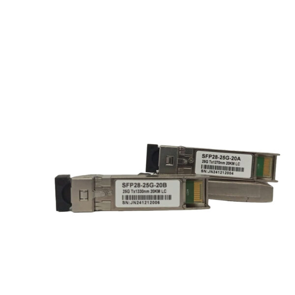 . Provides up to 20 km of 25GBase-BX throughput over single-mode fiber (SMF) using 1270nm-TX/1330nm-RX wavelengths via LC simplex connectors.